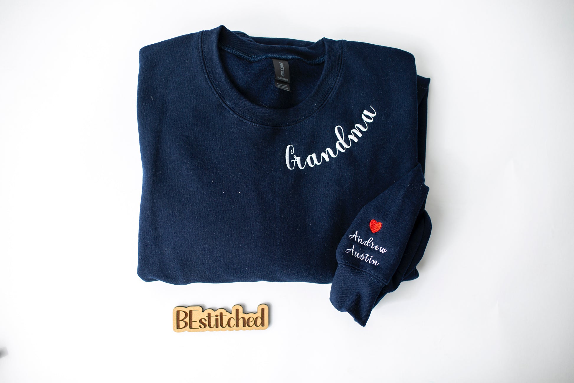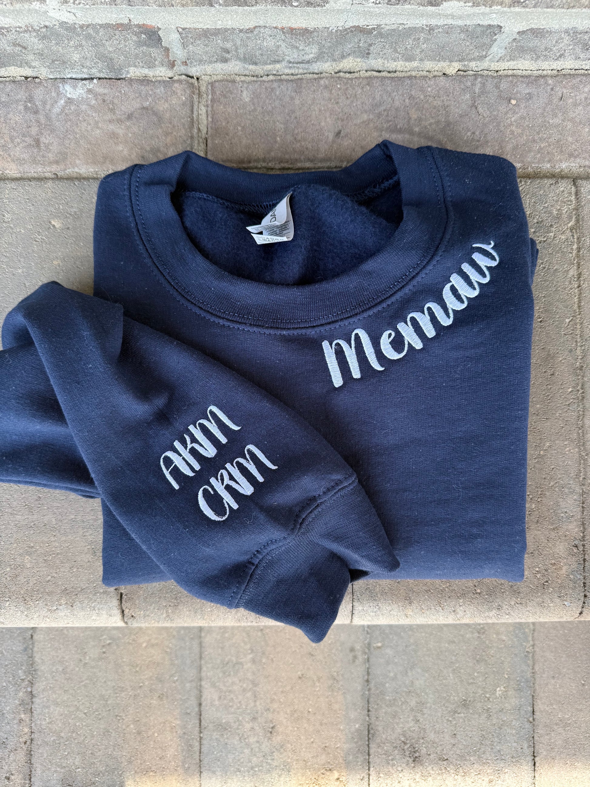 This special keepsake is for the Mother, Grandma, or Bride in your life. Your choice of name is embroidered around the collar of the left side. Includes Left or right sleeve embroidery, can be names, initials or special dates.